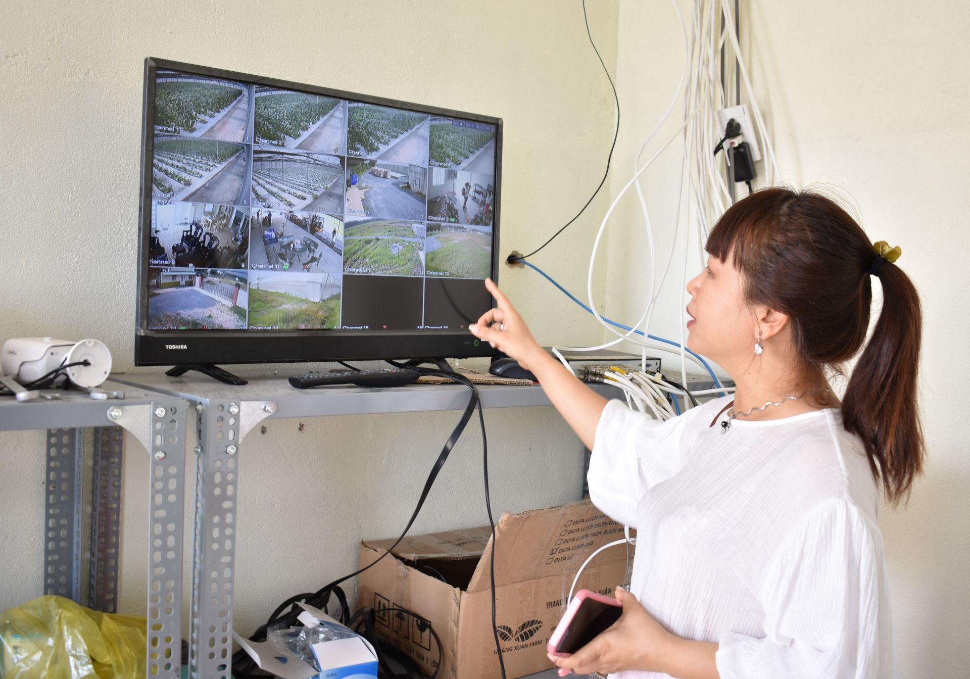 Khoảng 4 năm trước, chị Lệ trang bị công nghệ tưới nhỏ giọt Israel tiên tiến hơn. Công nghệ này không chỉ tiết kiệm nước tưới mà còn bón phân theo đúng nhu cầu của từng giai đoạn sinh trưởng, mỗi ngày đều phải đo độ EC, pH trong đất, nếu thiếu hoặc thừa dư lượng độ EC, pH máy sẽ báo đến máy chủ. Tất cả hệ thống máy này đều được kết nối internet để điều khiển từ xa. Song song đó, tại tất cả các vườn, chị Lệ đều trang bị camera để theo dõi từ xa. Để đầu tư cho hệ thống máy móc này, chị đã phải bỏ ra hơn 1 tỷ đồng (chưa tính hệ thống nhà kính).
