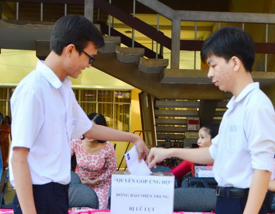 Học sinh trường Lý Thường Kiệt đóng góp ủng hộ đồng bào miền Trung.