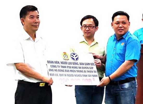 Tại Công ty TNHH Pou Hung Việt Nam (KCN Chà Là), đoàn đã nhận số tiền ủng hộ 200 triệu đồng do CĐCS Công ty TNHH Pou Hung Việt Nam vận động Ban Giám đốc và đoàn viên, công nhân, lao động đóng góp.