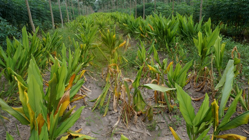 Một vườn nghệ bị nhiễm bệnh vàng lá. |