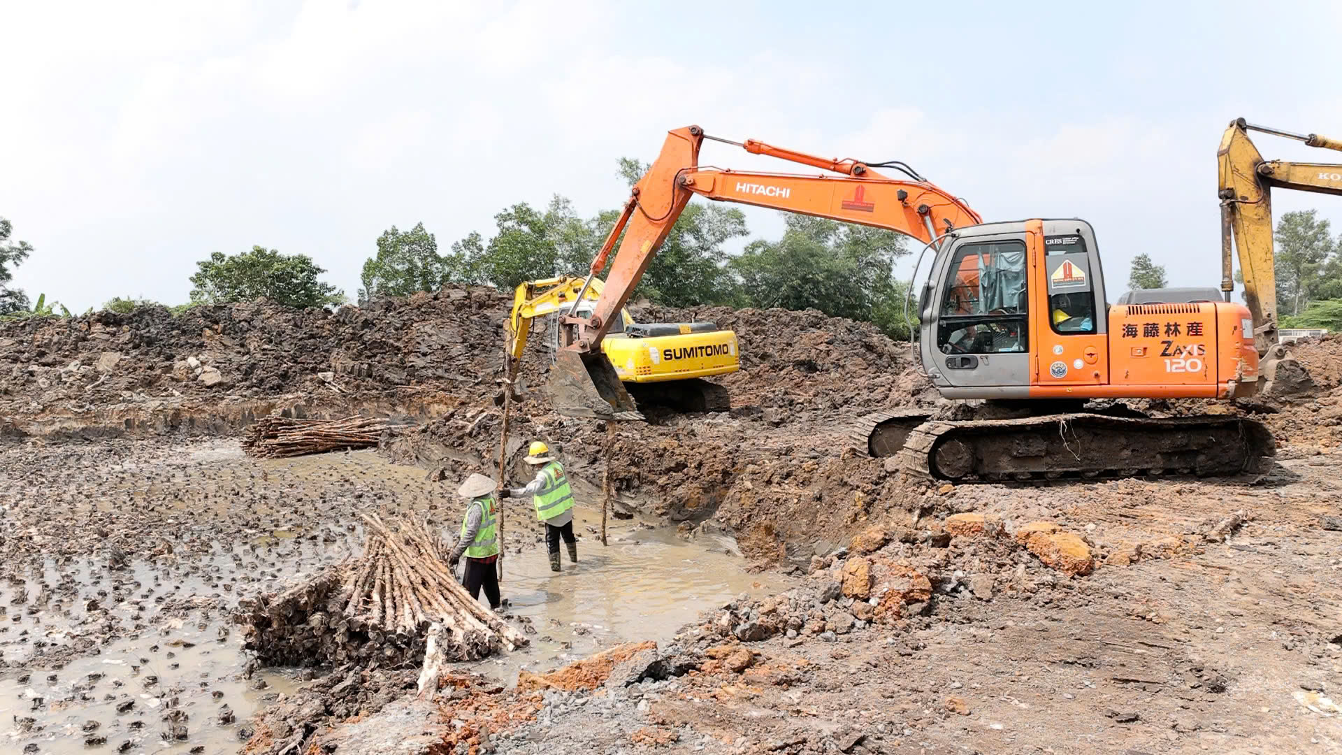 Đóng cừ gia cố nền đất yếu tại dự án đường N8.