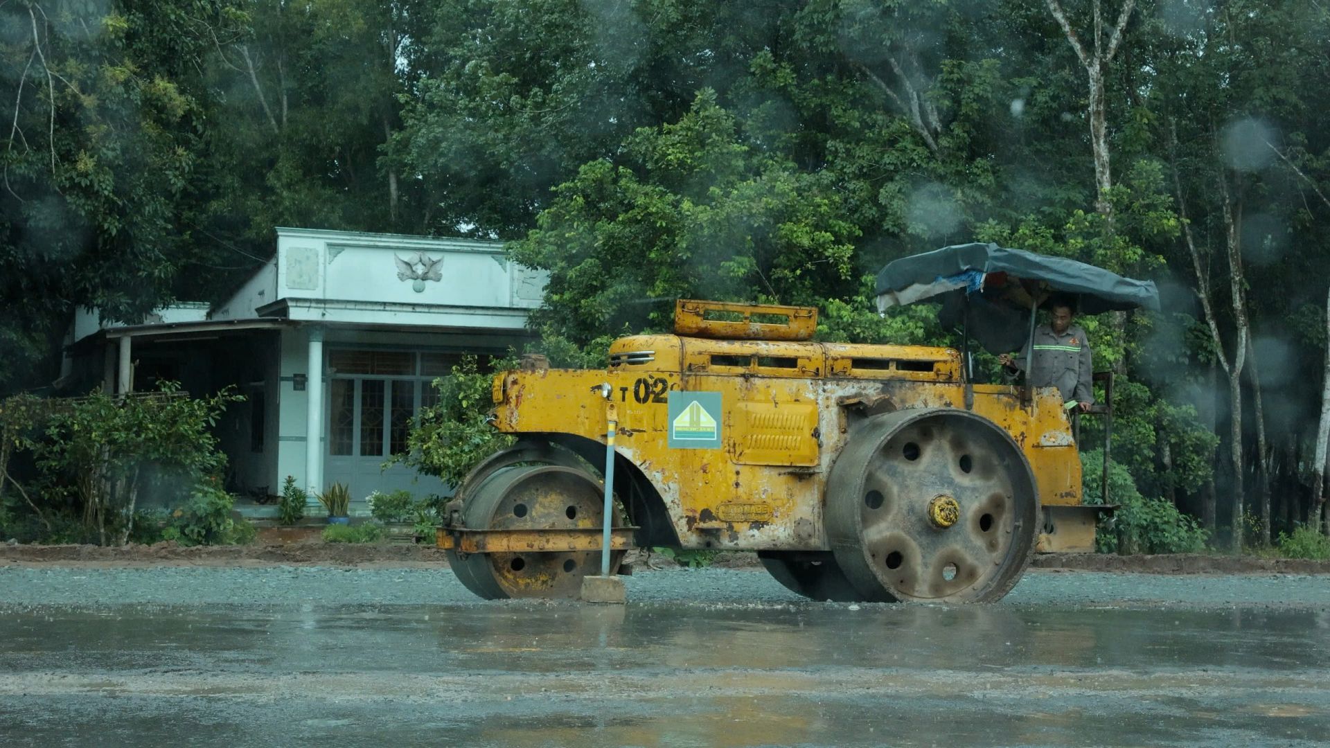 Thời tiết mưa kéo dài ảnh hưởng đến tiến độ thi công các dự án giao thông (thi công dự án đường 789 trong mưa).