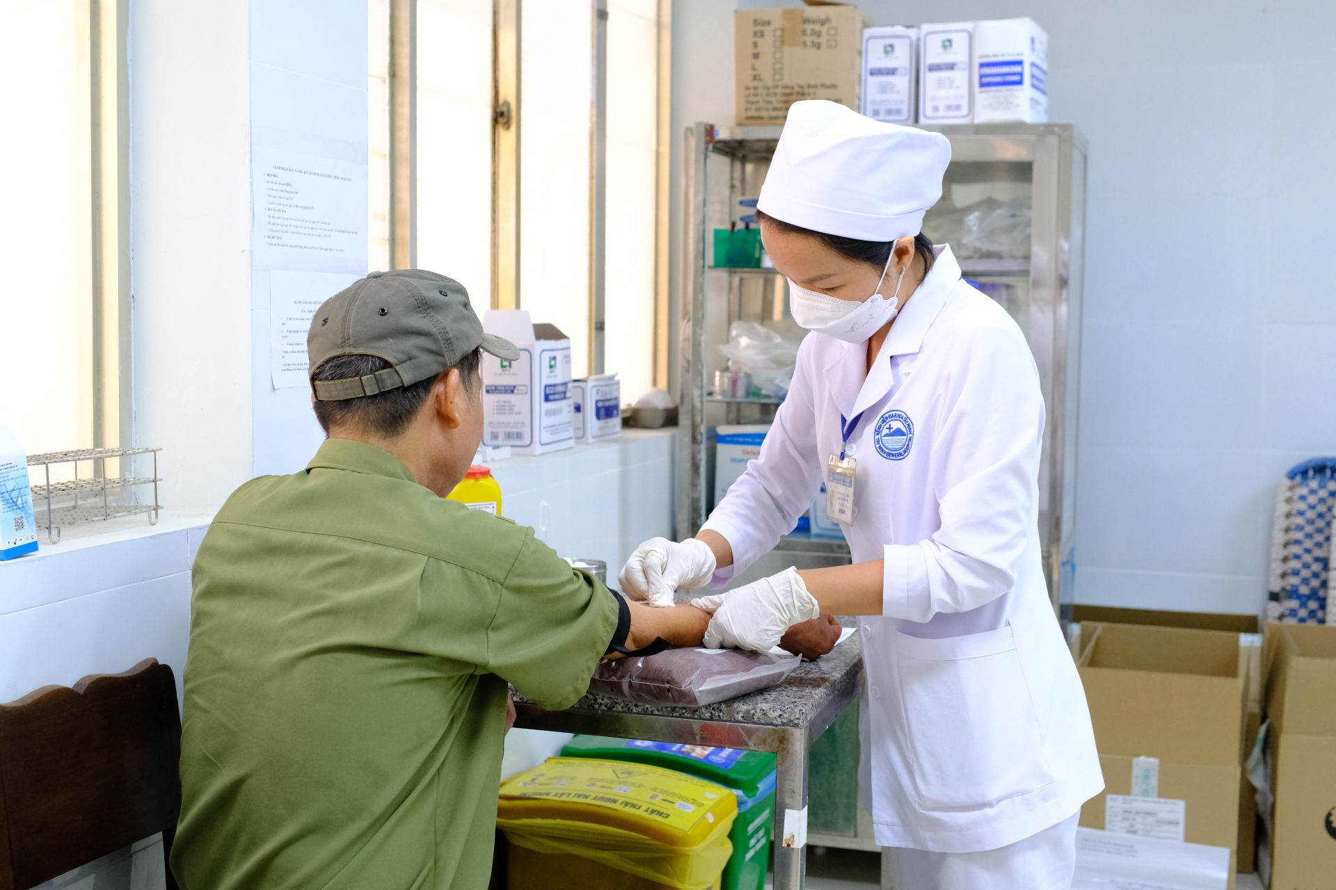 Nhân viên y tế lấy mẫu xét nghiệm cho người bệnh