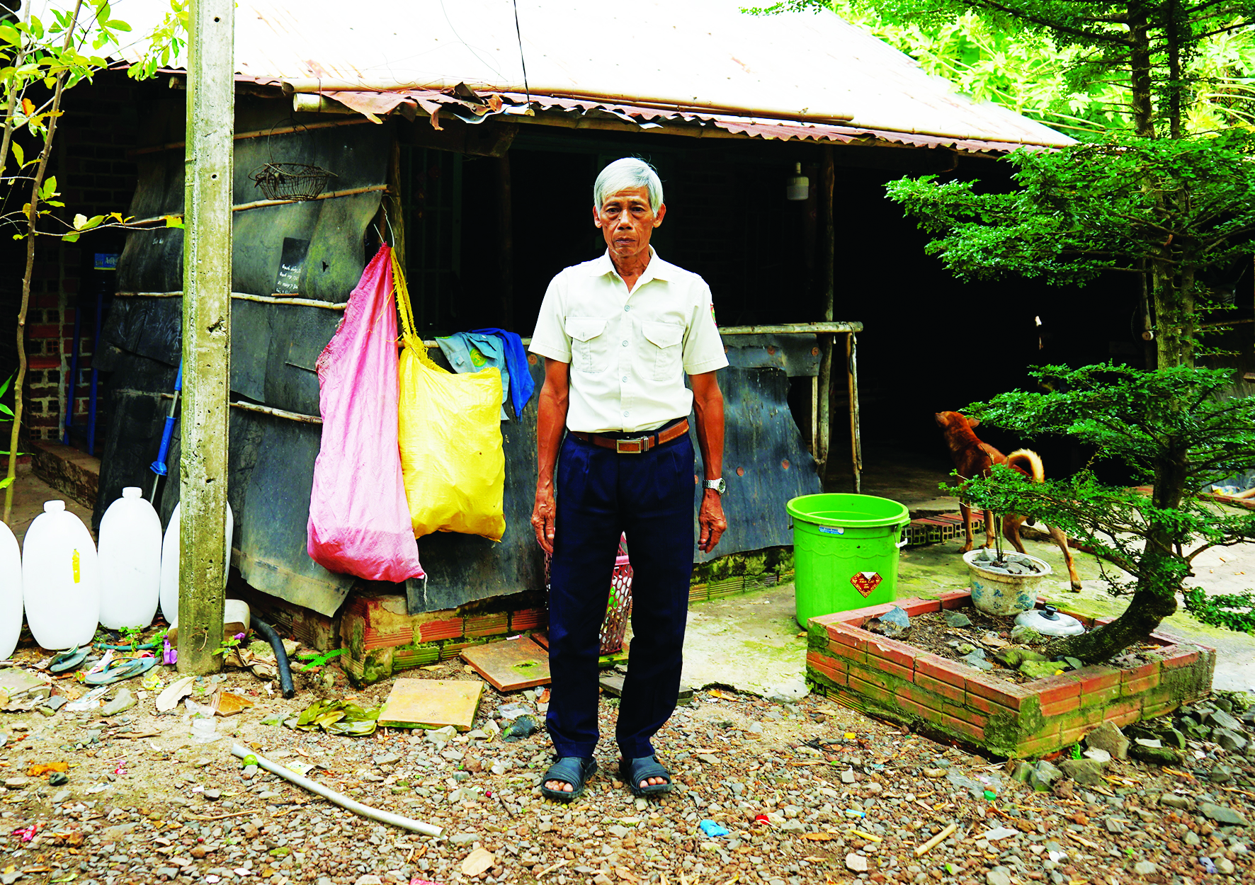 Nhưng vì không được phép xây dựng kiên cố nên đành cất nhà tạm bợ sát vách với nhau. Ông Hải chỉ cho chúng tôi xem mái tôn căn nhà của ông đã bị gỉ sét, dột nước mỗi khi có mưa. Người đàn ông này than phiền: “Chúng tôi muốn cất nhà đàng hoàng để ở nhưng chính quyền địa phương không cho phép. Hàng chục năm qua, cha con tôi đành phải sinh sống trong những căn nhà lụp xụp như thế”.