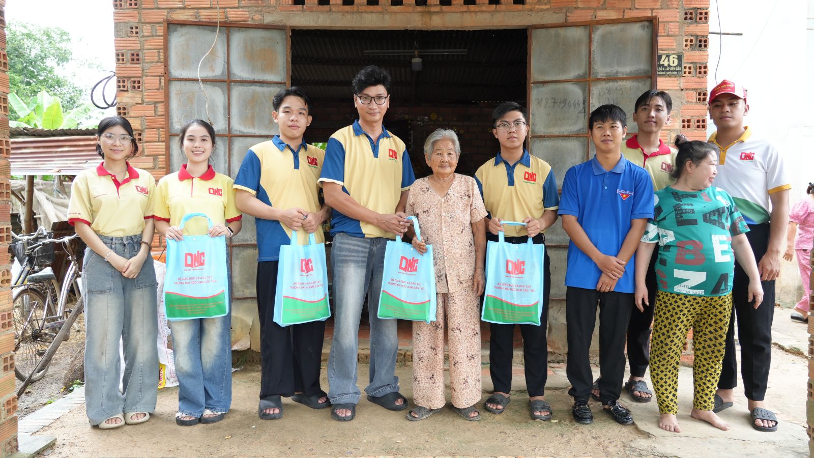 Sinh viên Đại học Nam Cần Thơ, tặng quà Tết cho hộ bà Lê Thị Quyến ấp Bến Cầu, xã Biên Giới, huyện Châu Thành.
