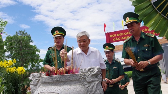 Đại tá Nguyễn Lương- nguyên Chỉ huy trưởng BĐBP tỉnh Tây Ninh cùng lãnh đạo Bộ Chỉ huy thắp hương, viếng bia liệt sĩ Đồn BP Phước Tân.