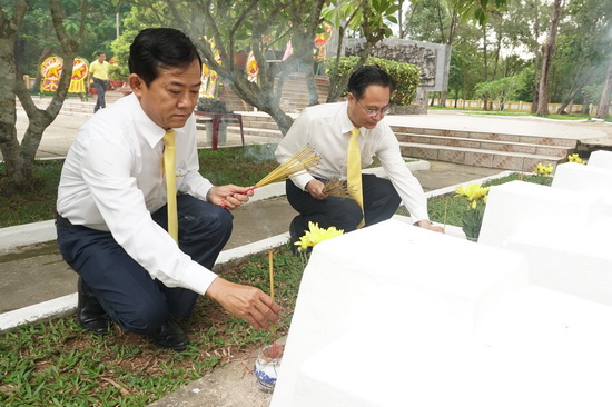 Đại biểu thắp hương tưởng niệm tại phần mộ các liệt sĩ