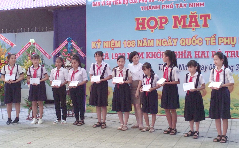 Nhân dịp này, Hội LHPN thành phố Tây Ninh trao 20 suất học bổng Trần Thị Sanh, mỗi suất trị giá 500 ngàn đồng cho các em học sinh nữ vượt khó học giỏi.