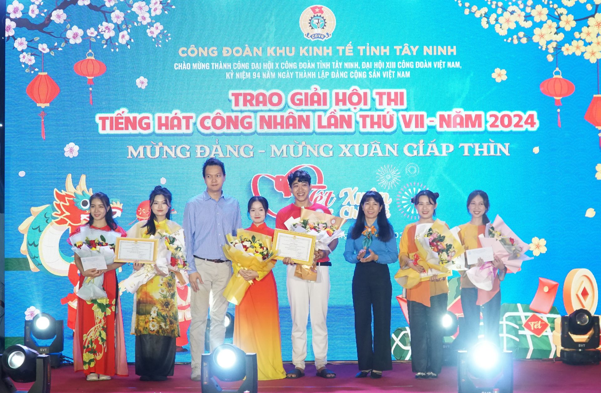 Kết quả, ở tiết mục đơn ca, song ca, đoàn viên Nguyễn Xuân Duyên (CĐCS Công ty TNHH Hansae TN) đạt giải Nhất, với phần thể hiện nhạc phẩm Xuân không màu; 2 giải Nhì được trao cho công nhân Phạm Minh Tân (CĐCS Công ty TNHH Winga Việt Nam) và công nhân Đỗ Quốc Bình (CĐCS Công ty TNHH May mặc Langham).