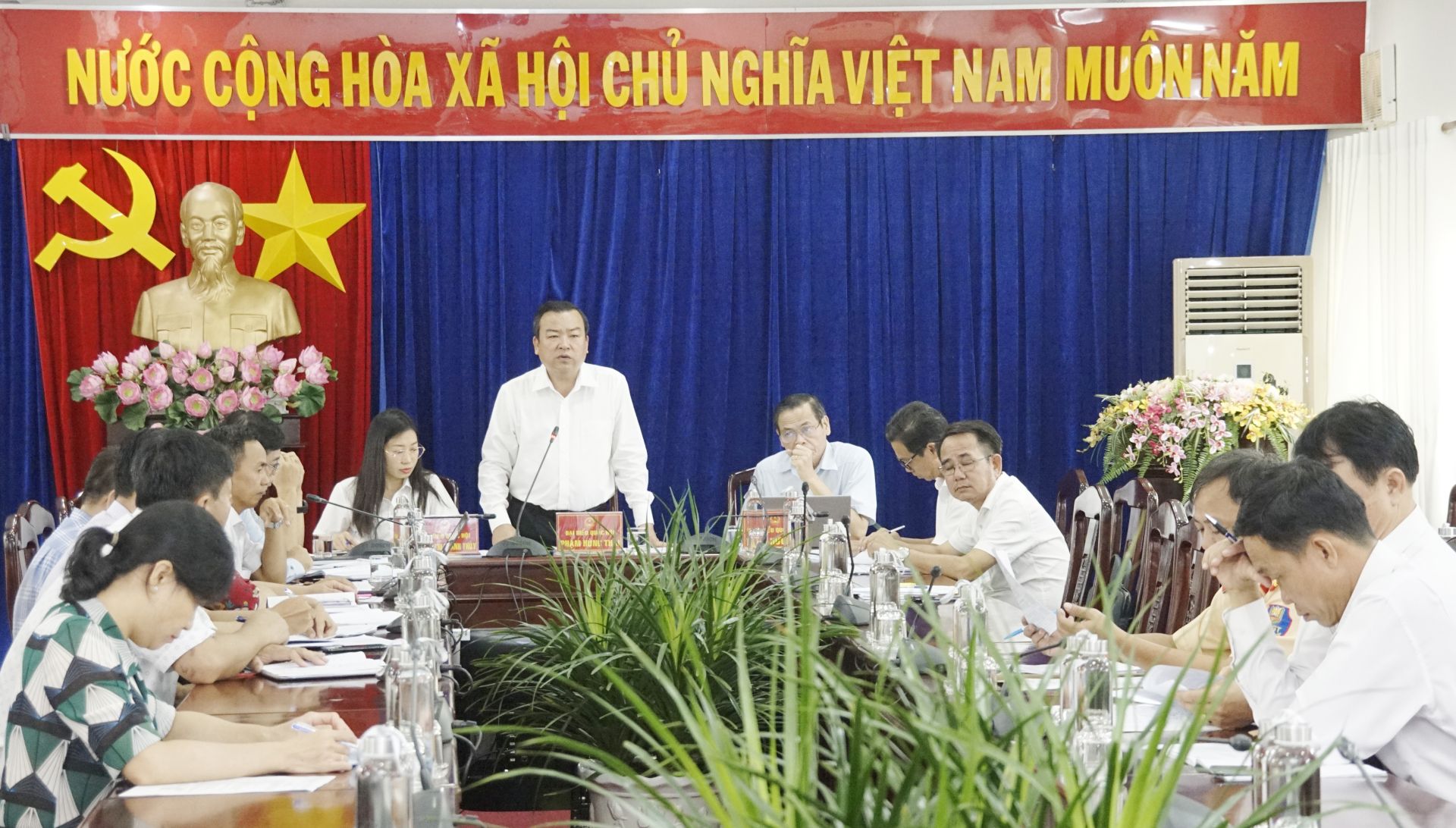 Tham dự buổi làm việc còn có các đại biểu Quốc hội Hoàng Thị Thanh Thuý, Trần Hữu Hậu và lãnh đạo một số sở, ngành có liên quan.