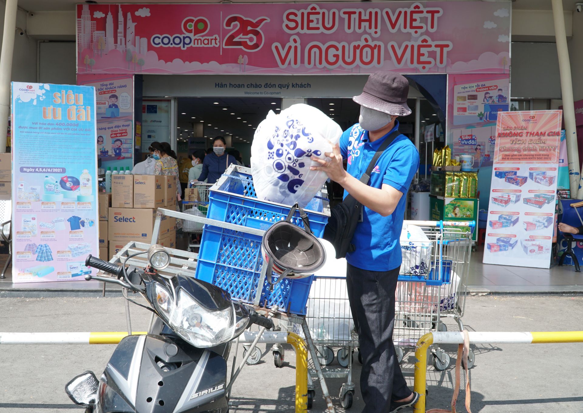Theo chân anh Nguyễn Hoàng Lâm, nhân viên giao hàng siêu thị Co.op Mart, chúng tôi thấy anh làm việc liên tục như con thoi. Nhân viên này kể: “Từ hồi bùng phát dịch Covid- 19 tới giờ, đơn ship hàng của em tăng đáng kể. Trước đây, siêu thị có 3 bạn giao hàng nhưng nay phải tuyển thêm người để đảm bảo kịp phục vụ bà con”.