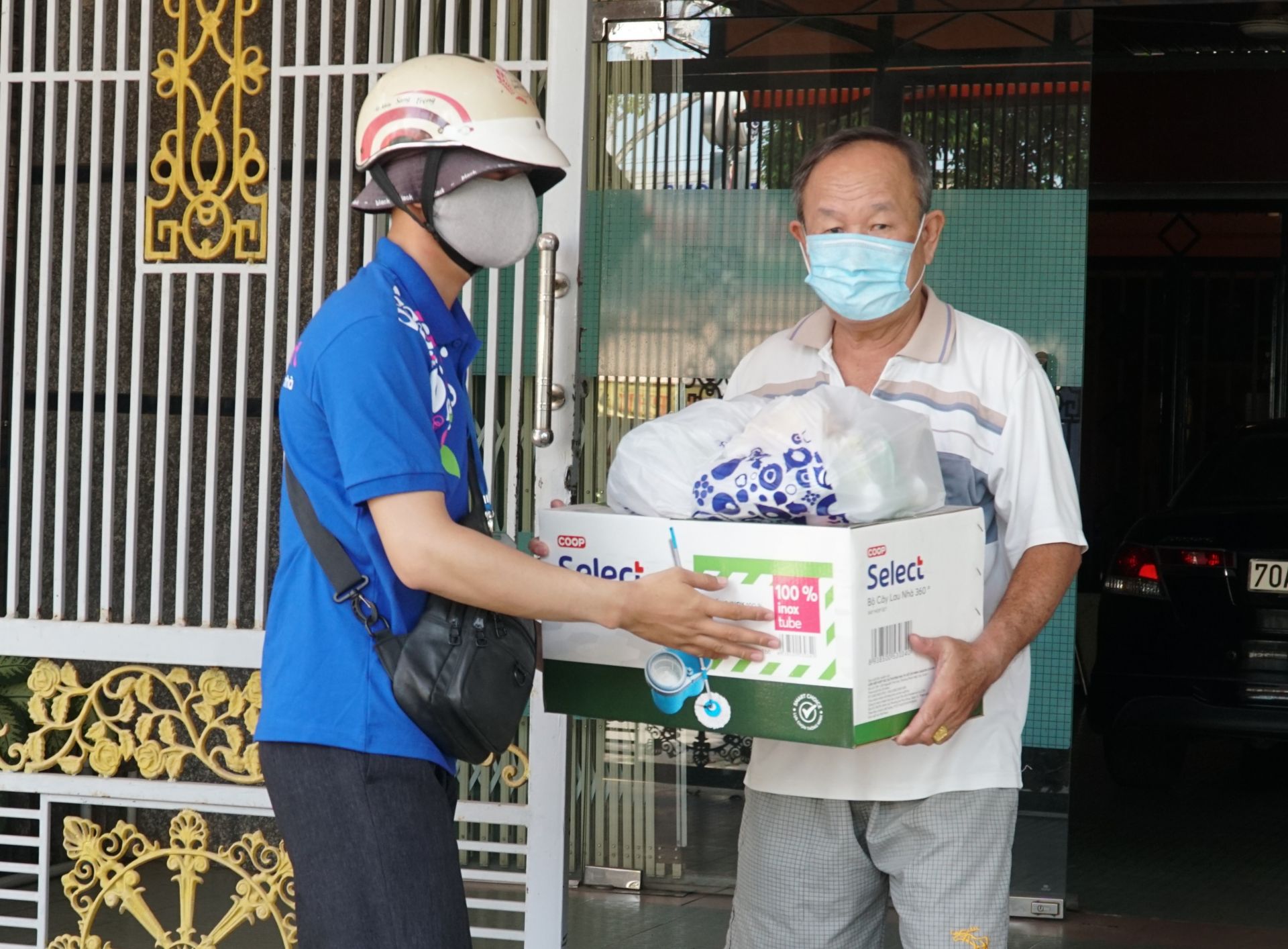 Nhận được điện thoại của shipper siêu thị Co.opmart phường 3, ông Lê Văn Quân, ngụ phường Hiệp Ninh, TP. Tây Ninh mở cổng ra nhận hàng. Người đàn ông này chia sẻ: “Trước tình hình dịch bệnh như hiện nay, trực tiếp đi chợ mua hàng hóa không an toàn. Khi cần mua sắm, tôi gọi tới siêu thị đặt mua. Sau đó, nhân viên giao tới nhà. Như vậy an toàn hơn”.