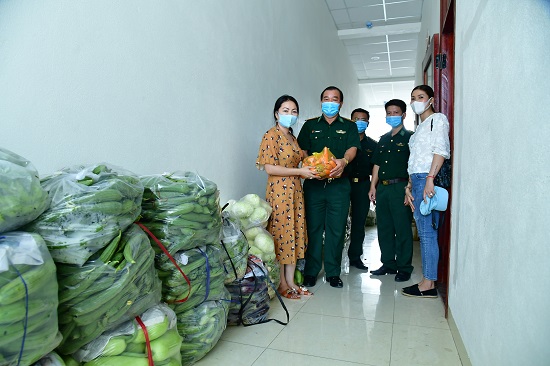 Chị Hằng trưởng nhóm thiện nguyện tại Tây Ninh nhờ Đại tá Nguyễn Tài Sơn – Chính uỷ BĐBP Tây Ninh chuyển rau củ quả của bà con lên biên giới