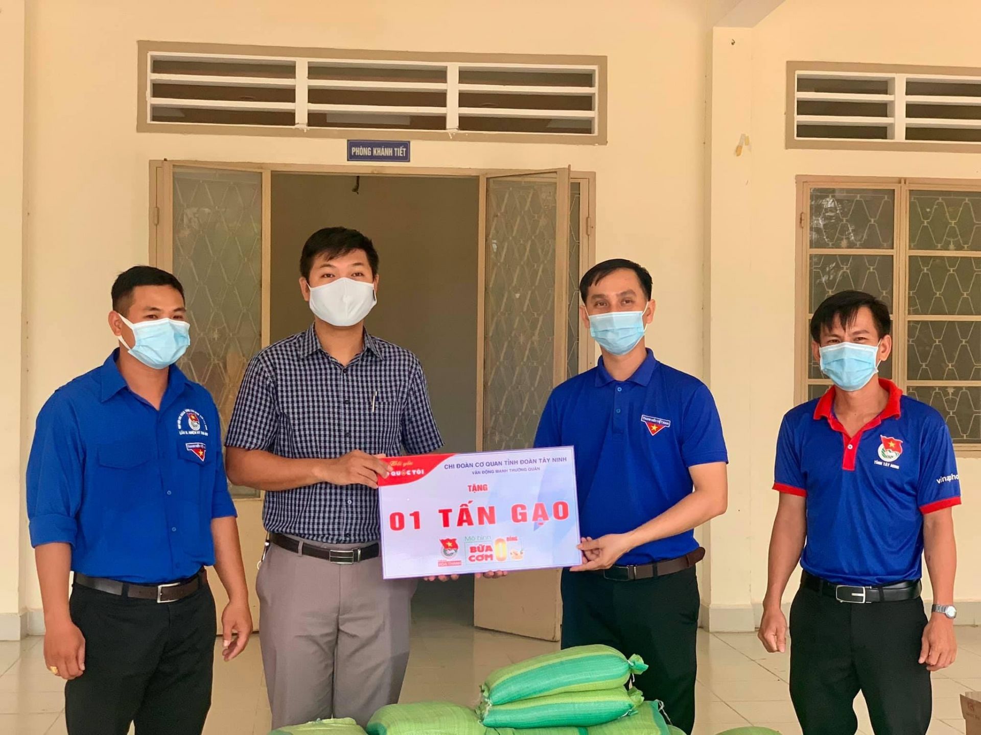 Chi đoàn Cơ quan Tỉnh đoàn tặng 01 tấn gạo cho mô hình “Bữa cơm 0 đồng” của Thị đoàn Hòa Thành.