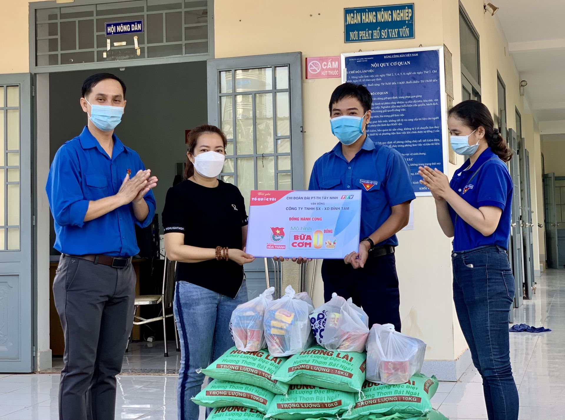 Chi đoàn Đài Phát thanh – Truyền hình tỉnh vận động Công ty TNHH Sản xuất – Xây dựng Đỉnh Tâm (phường 4, thành phố Tây Ninh) hỗ trợ 1 tấn gạo cho mô hình. Chi đoàn cùng đơn vị tài trợ đến thăm, tặng quà cho các hộ dân trên địa bàn thị xã; thăm, tặng quà các cán bộ, chiến sĩ làm nhiệm vụ tại chốt phong toả phòng chống dịch Covid-19 ấp Trường Đức, xã Trường Đông. Các hoạt động đều được tổ chức trên tinh thần đảm bảo an toàn phòng, chống dịch Covid-19.