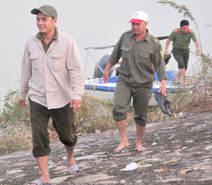 Cán bộ địa phương vận động người dân hồ Dầu Tiếng không ra khơi đánh cá.