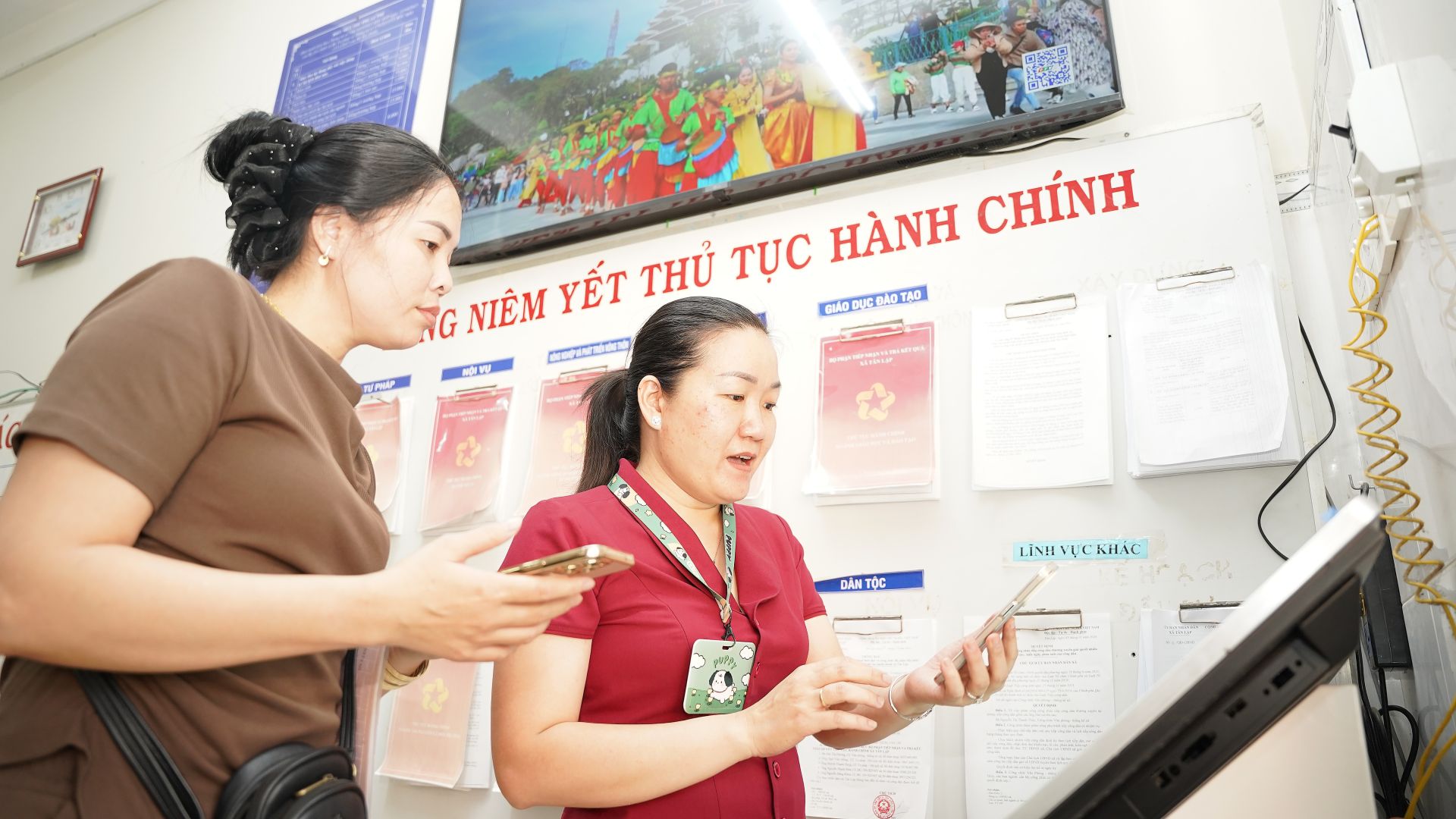 Công chức xã Tân Lập hướng dẫn người dân sử dụng dịch vụ công trực tuyến