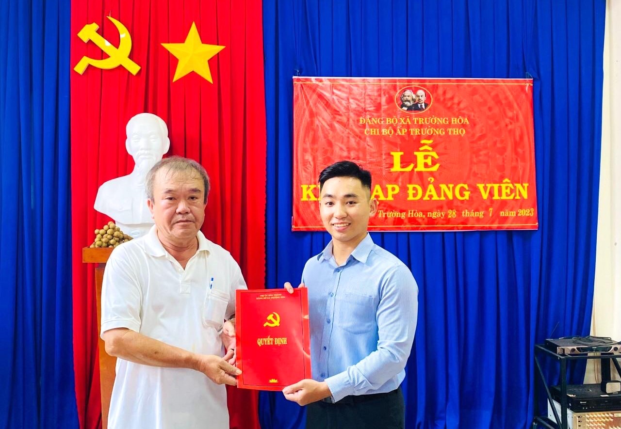 Trao quyết định kết nạp Đảng tại Chi bộ ấp Trường Thọ, xã Trường Hoà, thị xã Hoà Thành.