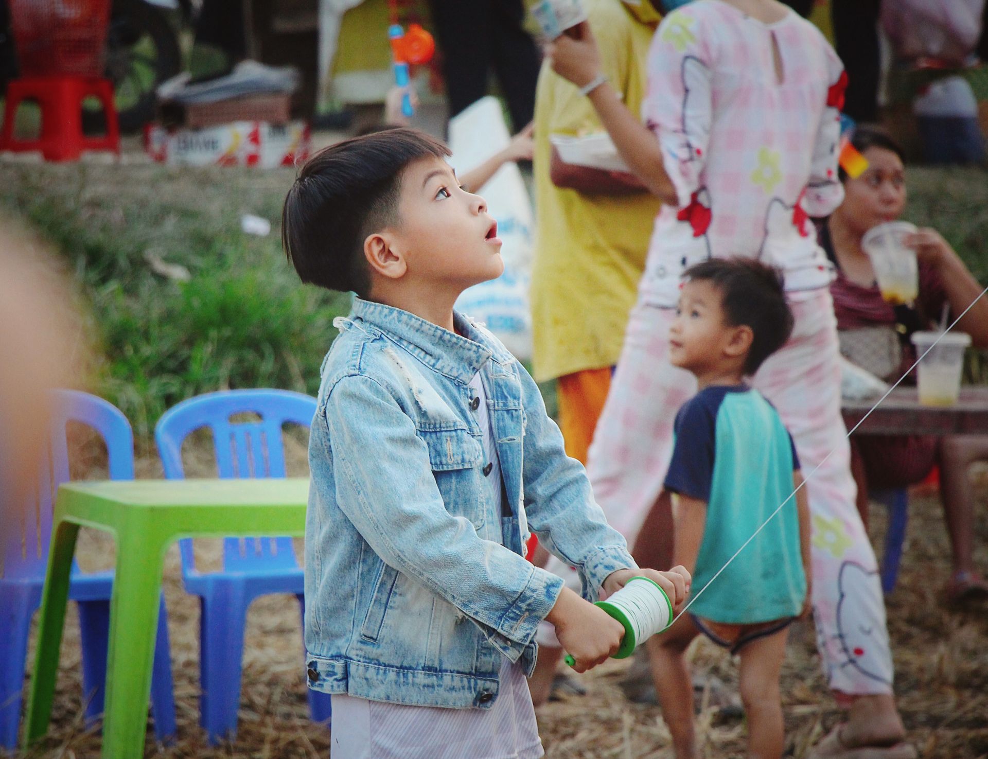 Chăm chú dõi theo cánh diều.