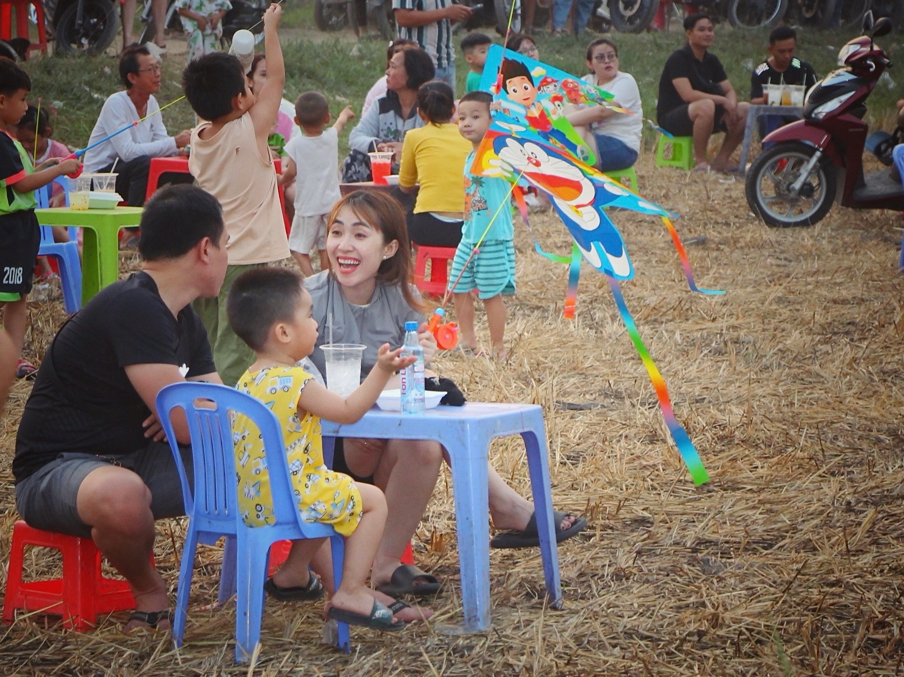 Nhiều gia đình lựa chọn đưa con nhỏ đi thả diều để con cái được vận động, có thêm thú chơi lành mạnh thay vì cứ “dán mắt” vào điện thoại. Và đây cũng là dịp để cả nhà quây quần, gắn kết nhau hơn.