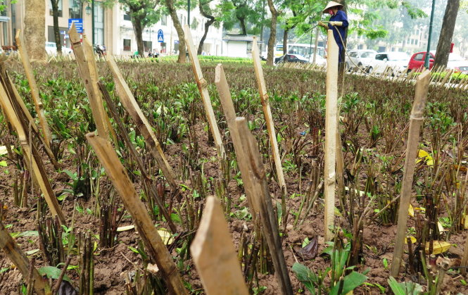 Hàng ngàn cây chông cắm ở vườn hoa được nhổ bỏ -Ảnh: HOÀNG BÁCH