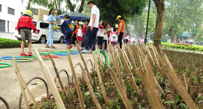 Trước đó như Tuổi Trẻ đã thông tin, để ngăn chó thả rông vào khu vực vườn hoa 19-8 quận Hoàn Kiếm Hà Nội, khoảng một tuần nay hàng ngàn cây chông nhọn đầu đã được cắm cạnh lối đi.