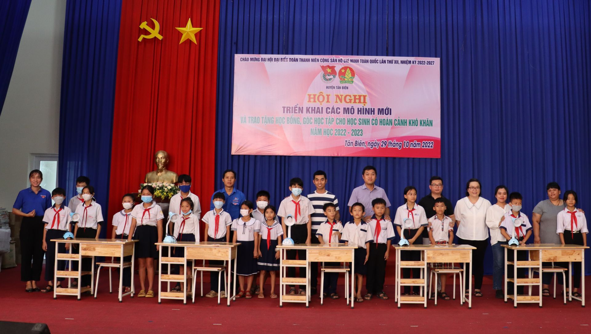 Ngày 29.10, tại Nhà thiếu nhi huyện Tân Biên, Nhóm Thiện nguyện Xanh phối hợp cùng huyện đoàn Tân Biên tổ chức chương trình trao tặng góc học tập cho học sinh có hoàn cảnh khó khăn trên địa bàn huyện.