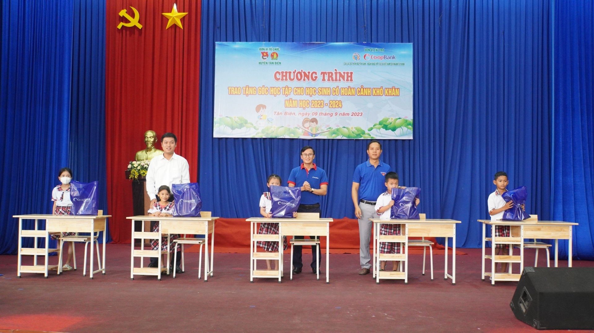 Ngày 8.9, tại Nhà thiếu nhi huyện Tân Biên, Nhóm thiện nguyện Xanh phối hợp Huyện đoàn Tân Biên và Ngân hàng Hợp tác xã Việt Nam, Chi nhánh Tây Ninh tổ chức chương trình trao tặng góc học tập cho học sinh có hoàn cảnh khó khăn trên địa bàn huyện.