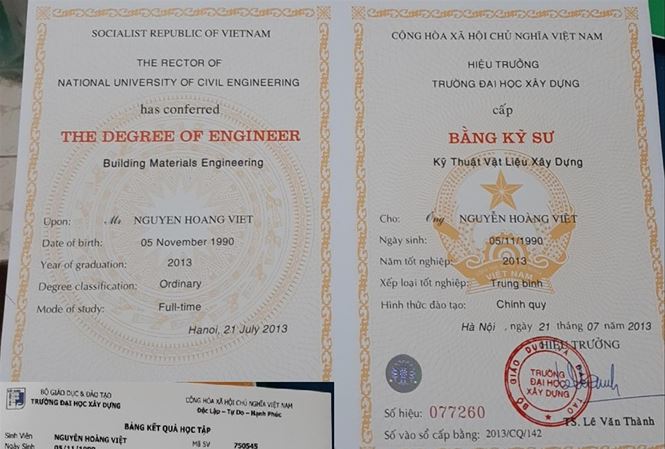 Nói về bằng giả, lãnh đạo trường ĐHXD cho biết, mỗi năm trường cũng nhận được hàng trăm đề nghị xác minh văn bằng, trong đó hệ đào tạo tại chức nhận được nhiều yêu cầu xác minh nhất. Qua đối chiếu, trường cũng phát hiện một số văn bằng giả, mạo danh trường.Lãnh đạo ĐHXD khẳng định, dấu phôi ở các trường được quản lý rất chặt chẽ, không có việc để lọt phôi ra ngoài. Đối với những trường hợp làm bằng tốt nghiệp theo diện này, 100% là giả.