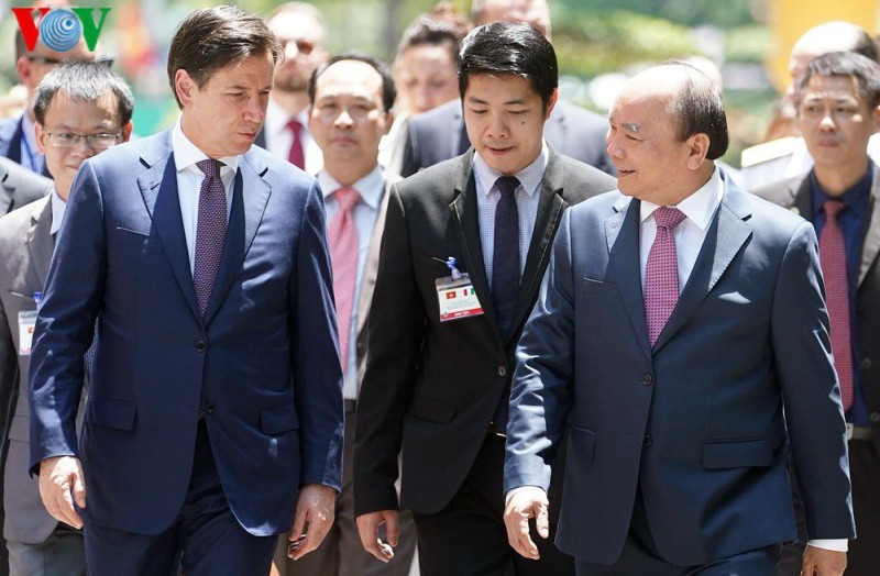 5. Từ ngày 5-6/6/2019, Thủ tướng Cộng hòa Italia Giuseppe Conte tham dự “Đối thoại cấp cao về quan hệ kinh tế Italia –ASEAN lần thứ ba” và thăm chính thức Việt Nam theo lời mời của Thủ tướng Nguyễn Xuân Phúc. Ảnh: Thủ tướng Nguyễn Xuân Phúc tiếp Thủ tướng Cộng hòa Italia Giuseppe Conte.