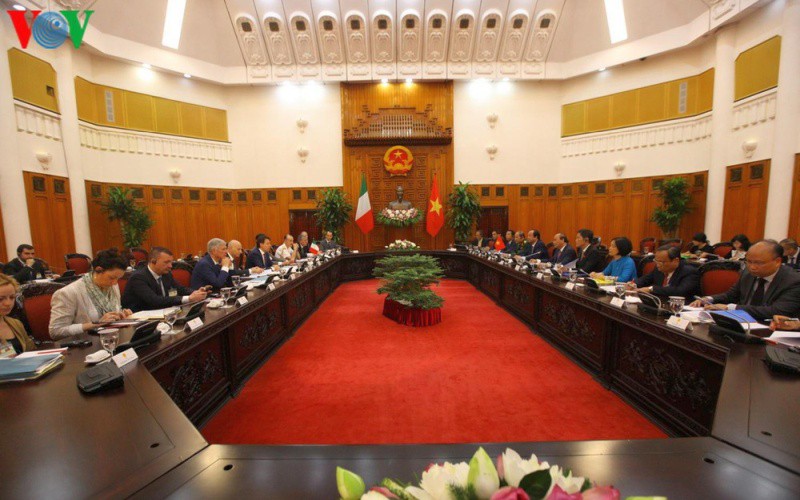 Chuyến thăm chính thức Việt Nam và tham dự “Đối thoại cấp cao về quan hệ kinh tế Italia –ASEAN lần thứ ba” của Thủ tướng Giuseppe Conte sẽ là cơ hội quan trọng để Italia thắt chặt quan hệ kinh tế - thương mại với các nước ASEAN; là cơ hội để cộng đồng doanh nghiệp Italia sẽ hiểu rõ hơn về lợi ích hợp tác đầu tư và thương mại với các nước ASEAN, trong đó có Việt Nam. Ảnh: Hai Thủ tướng tiến hành hội đàm.