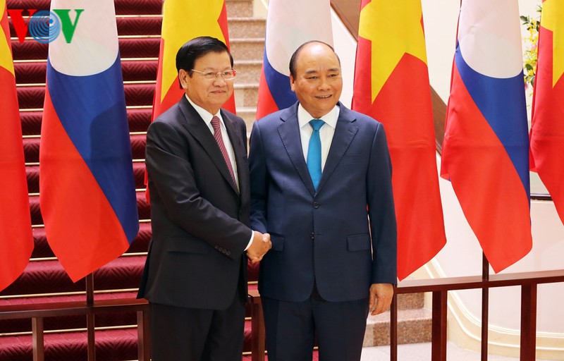 Chuyến thăm diễn ra trong bối cảnh quan hệ hữu nghị truyền thống, đoàn kết đặc biệt và hợp tác toàn diện Việt Nam - Lào đang phát triển mạnh mẽ. Hai bên nhất trí tiếp tục tăng cường trao đổi các chuyến thăm giữa lãnh đạo cấp cao hai nước bằng nhiều hình thức linh hoạt, phong phú; phối hợp triển khai hiệu quả các thỏa thuận đã đạt được tại Kỳ họp lần thứ 39 Ủy ban liên Chính phủ Việt Nam – Lào (2/2017) và kết quả chuyến thăm hữu nghị chính thức Lào của các Lãnh đạo cấp cao Việt Nam. Ảnh: Thủ tướng Nguyễn Xuân Phúc trao đổi với Thủ tướng Lào Thongloun Sisoulith bắt tay trước khi tiến hành hội đàm.