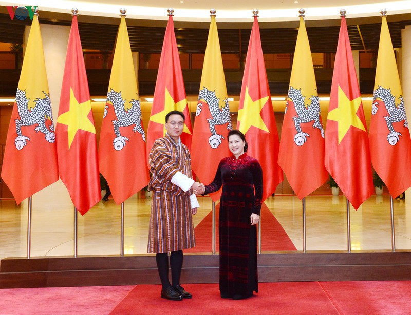 11. Từ ngày 11-14/5/2019, Đoàn đại biểu cấp cao Hội đồng Quốc gia (Thượng viện) Vương quốc Bhutan do Chủ tịch Thượng viện Tashi Dorji dẫn đầu thăm chính thức Việt Nam theo lời mời của Chủ tịch Quốc hội Nguyễn Thị Kim Ngân. Ảnh: Chủ tịch Quốc hội Nguyễn Thị Kim Ngân và Chủ tịch Thượng viện Bhutan Tashi Dorji.
