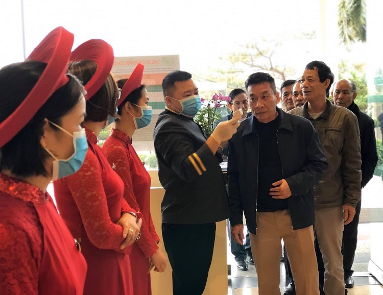 Đám cưới cặp đôi Hữu Hùng - Phương Giang ở TP Hạ Long đầu tháng 2/2020, khi Việt Nam xuất hiện nhiều ca dương tính với nCoV. Toàn bộ nhân viên khách sạn đều đeo khẩu trang, kiểm tra nhiệt độ khách dự tiệc cưới. Ảnh: Nguyễn Hữu Hùng.