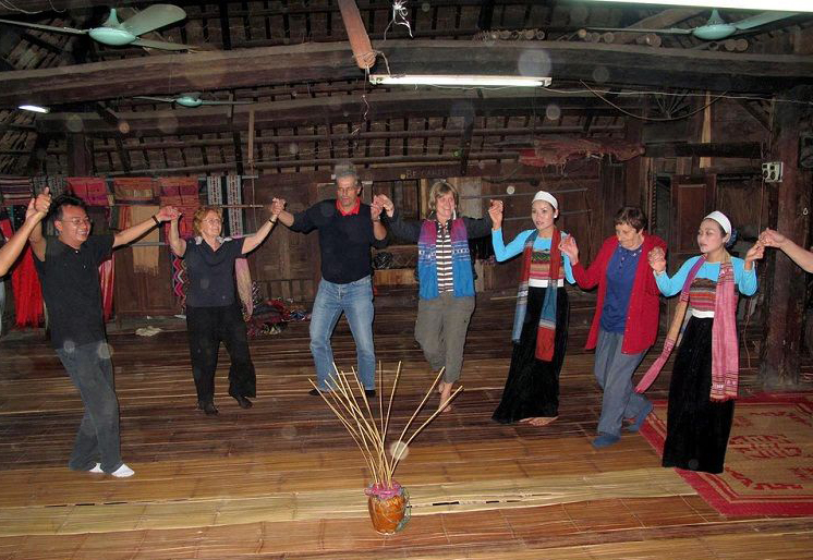 Du khách tham gia múa hát tại Mai Châu.