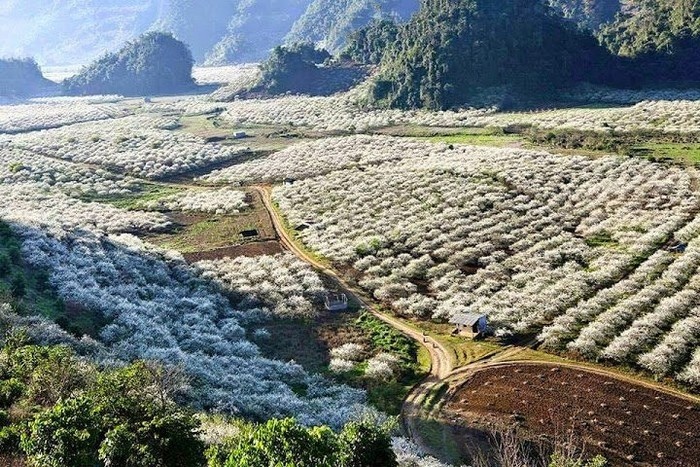 Mộc Châu nổi tiếng với những triền mận bung sắc trắng.