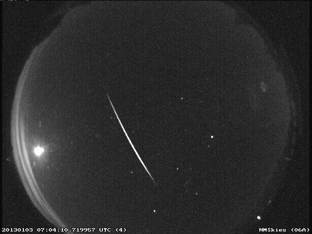 Một sao băng từ trận mưa sao băng Quadrantid chụp trên bầu trời New Mexico mới vào những giờ đầu ngày 3-1-2013. Ảnh: NASA.