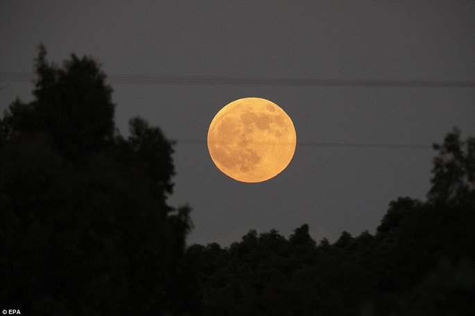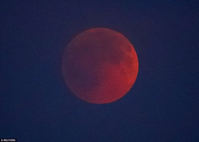 Nguyệt thực kéo dài hơn 5 tiếng, từ 00h14 đến 6h30, trong đó nguyệt thực toàn phần bắt đầu từ 2h30 đến 4h13, đạt cực đại vào 3h12. Sau đó, hiện tượng nguyệt thực một phần, nguyệt thực nửa tối xảy ra và kéo dài tới khoảng 6h30 sáng nay 28-7. (Ảnh: EPA)