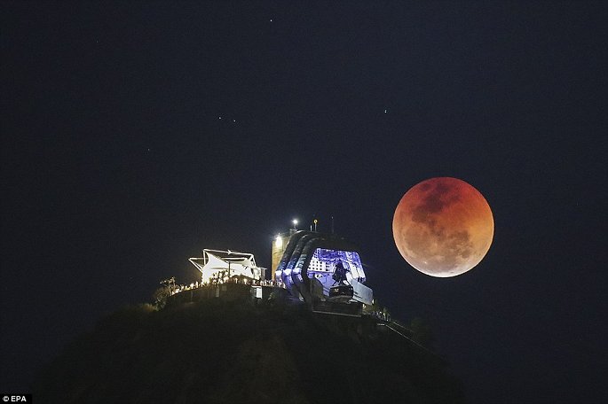 Mặt trăng chuyển sang màu đỏ máu ở Rio de Janeiro, Brazil. (Ảnh: EPA)