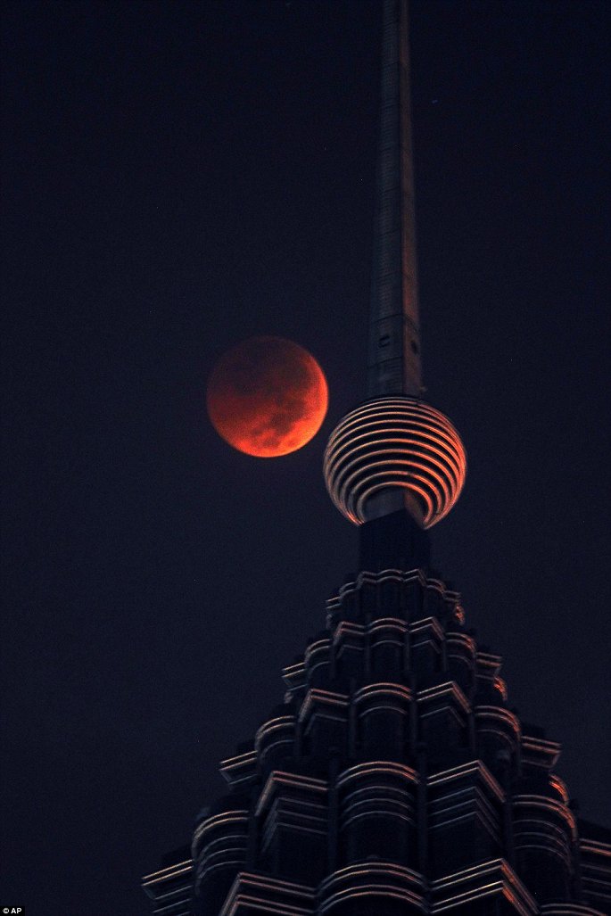 Khung cảnh tuyệt đẹp được chụp lại tòa tháp đôi Petronas ở Malaysia vào rạng sáng 28-7. (Ảnh: AP)