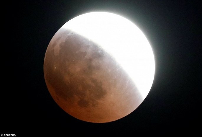 Khoảnh khắc trăng máu bắt đầu chiếm giữ bầu trời đêm ở Cairo, Ai Cập. (Ảnh: Reuters)