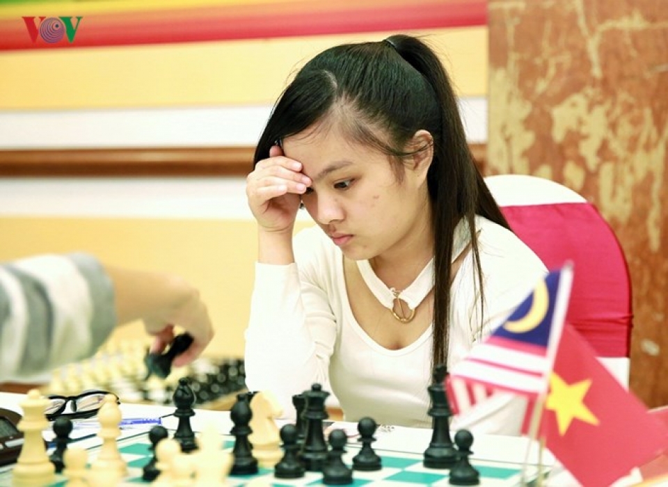 Kỳ thủ Phạm Thị Hương bị khiếm thị nhẹ.