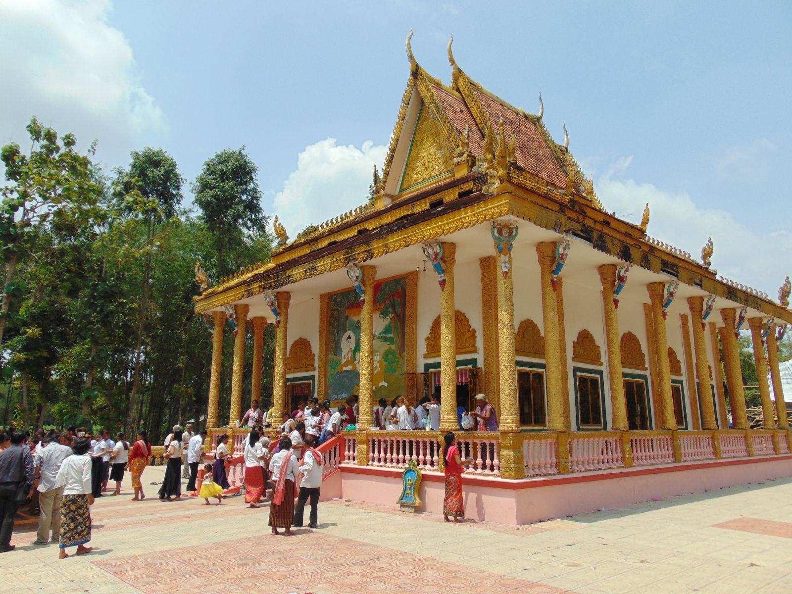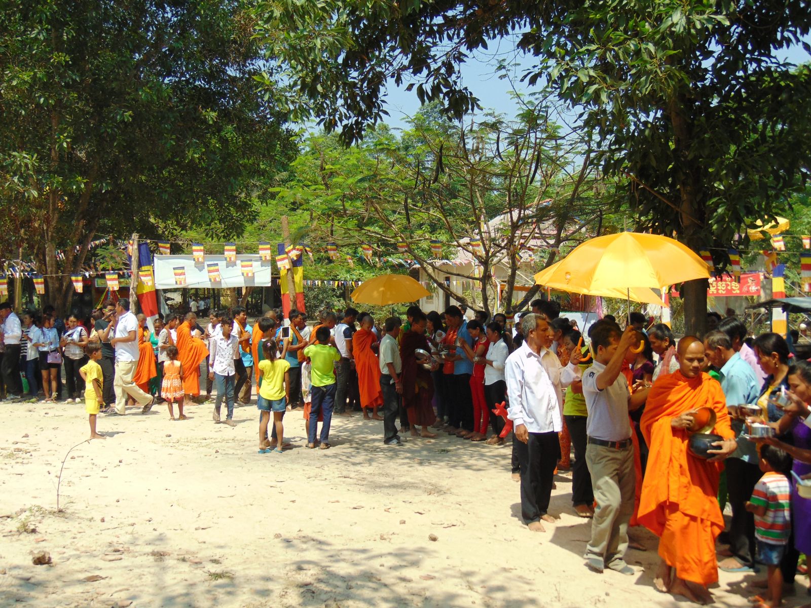 Nhưng, còn một lý do khác! Ðấy là giờ trưa ngày thứ hai của tết đang diễn ra lễ dâng cơm mới cho các nhà sư. Ở trên sân phía trước chùa, bày một chiếc bàn dài trải khăn trắng, đặt những chậu nhựa to và bình bát. Hầu như mọi gia đình Khmer trong ấp đã dồn tụ lại đây, tay cầm những chiếc cà- mèn đựng cơm trắng. Thế rồi lần lượt, bắt đầu từ các ông già bà cả, cho đến thanh thiếu nữ đến xúc từng muỗng cơm trắng tinh cho vào từng chiếc chậu và bình.