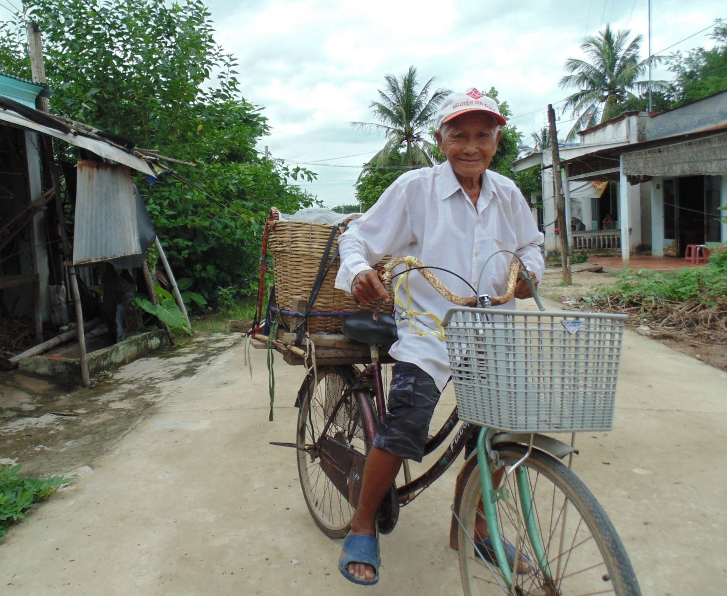 Cụ Thảo với chiếc xe đạp quen thuộc.
