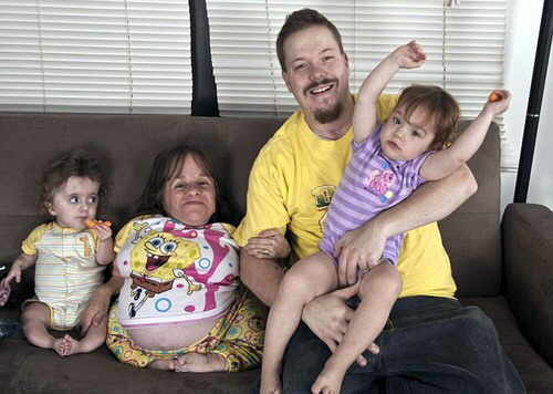 Người phụ nữ này có tên Stacey Herald, 35 tuổi ở Dry Ridge, Kentucky. Sau khi sinh xong hai đứa trẻ, cơ thể cô ấy cao chỉ còn 0,72 m. Cô bị mắc chứng bệnh Osteogenesis Imperfecta khiến xương dễ gãy và phổi không phát triển, điều này cũng góp phần làm cho chiều cao của Herald không thể cao hơn được nữa.