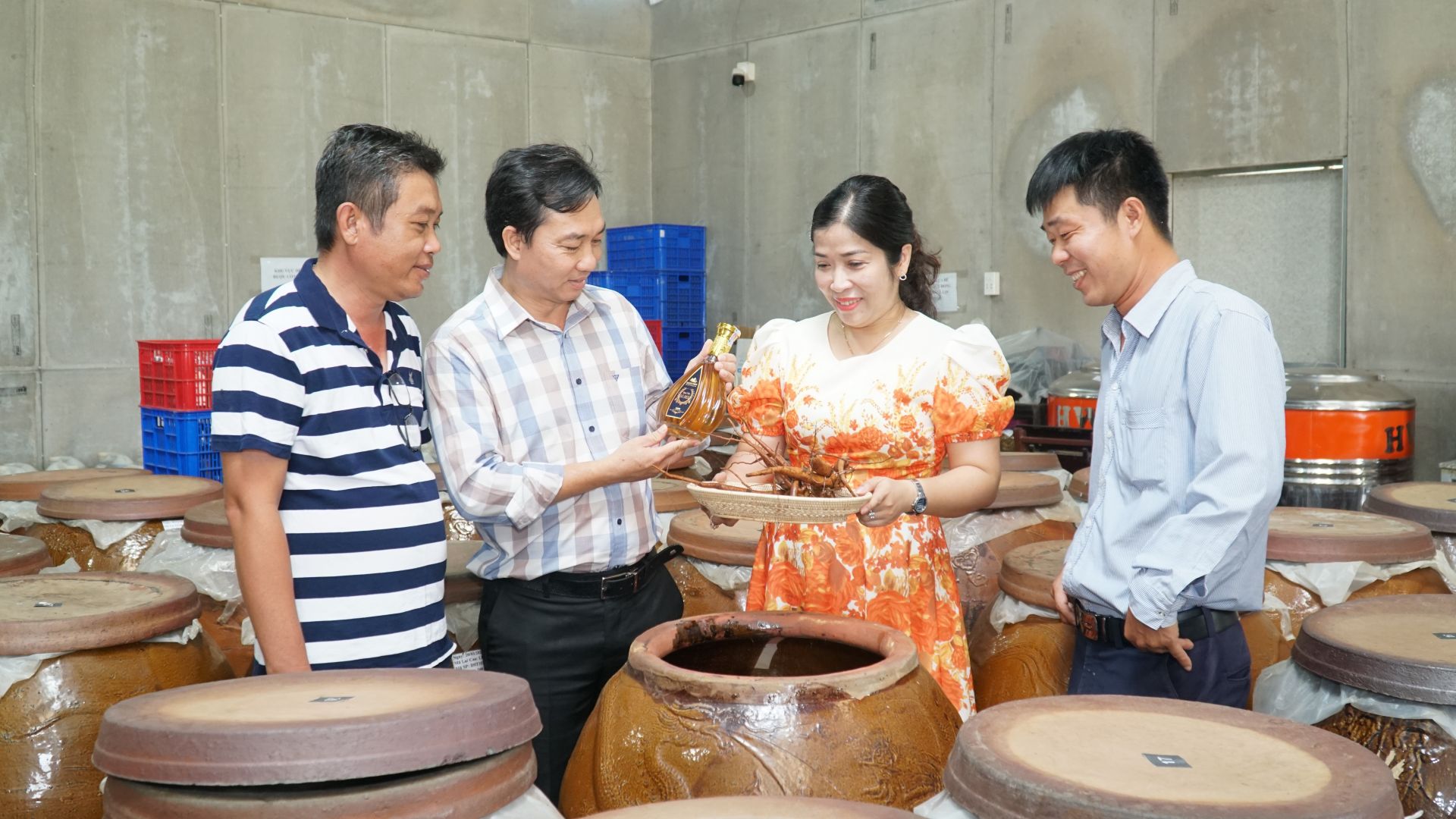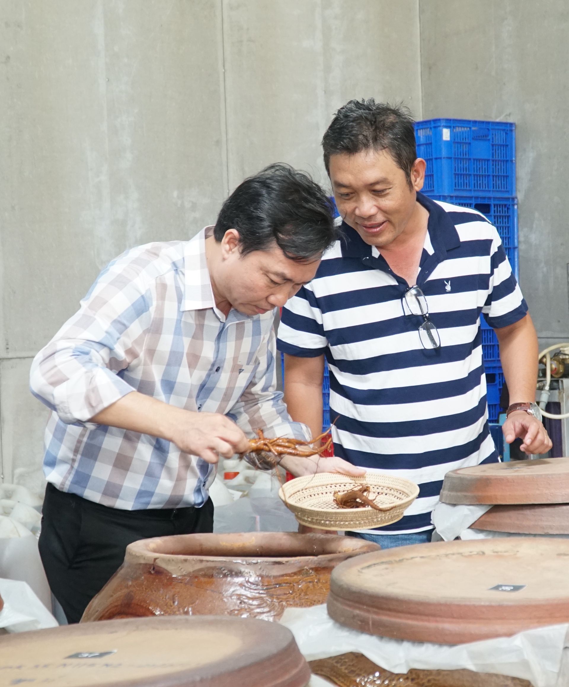 Bà Trần Thị Mỹ Hạnh- Giám đốc Công ty TNHH Bà Đen Farm kiểm tra chất lượng rượu sâm Bố Chính