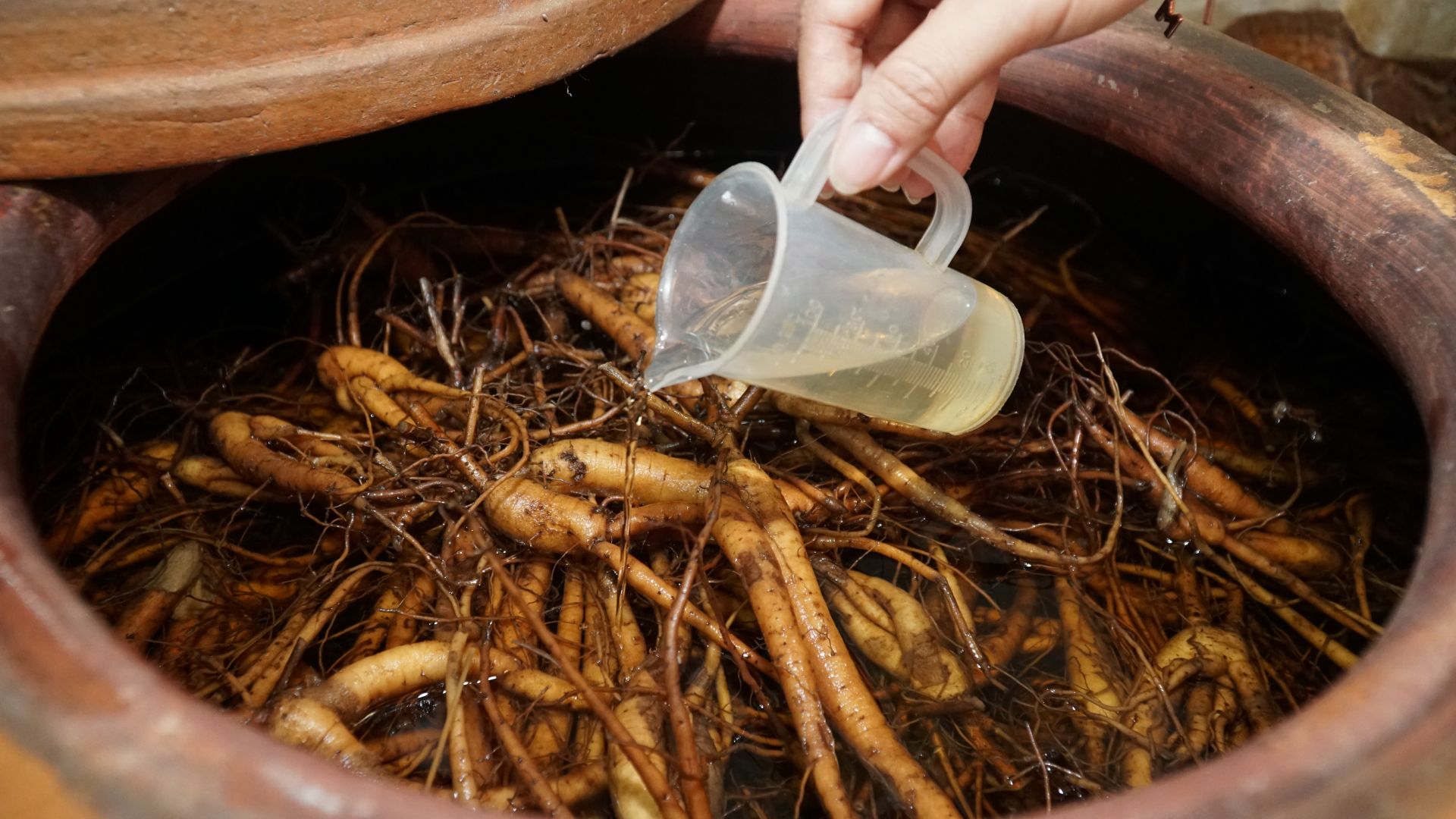 Rượu sâm Bố Chính được ngâm ủ hoàn toàn bằng củ sâm Bố Chính.