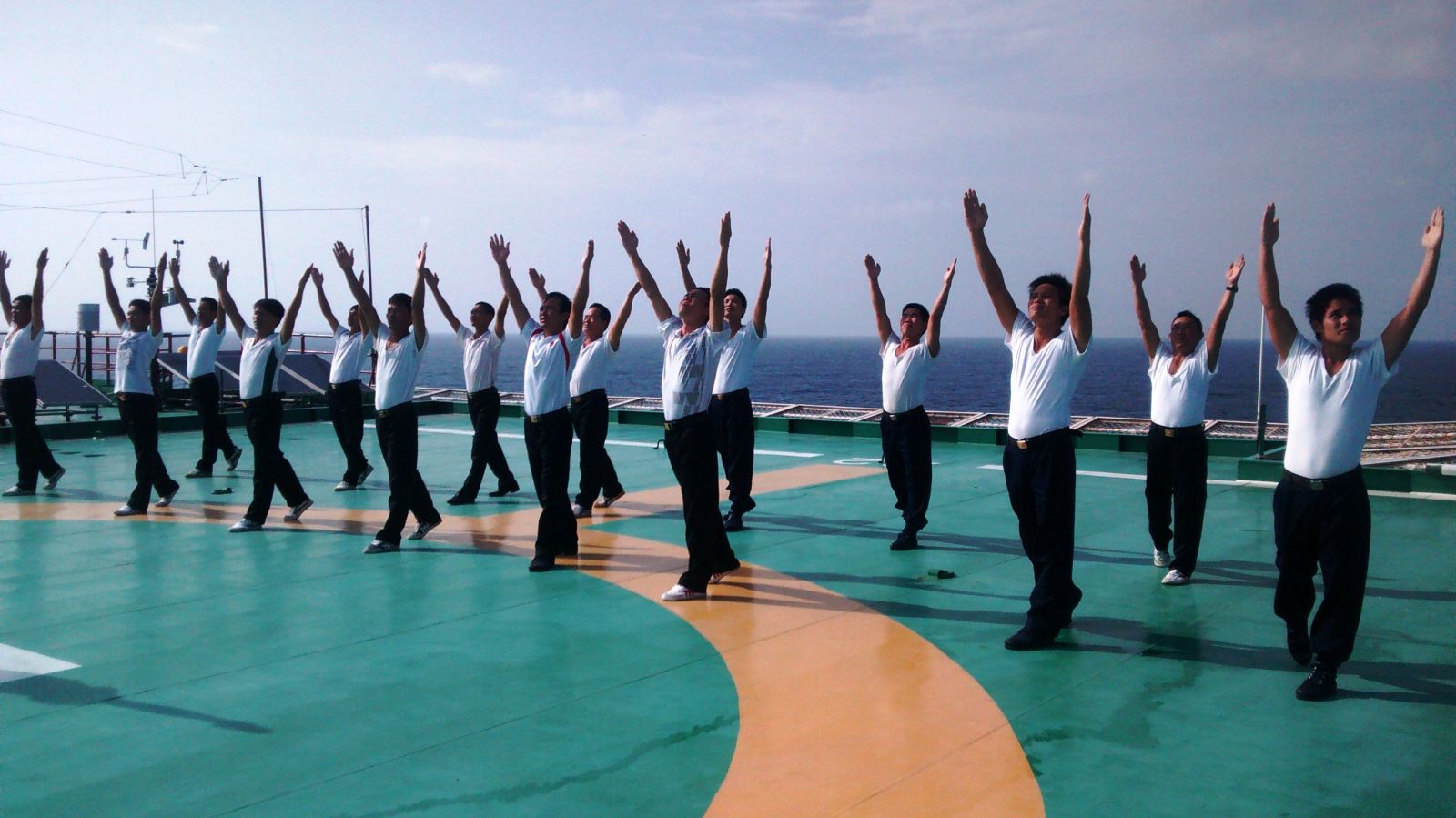 Một ngày mới của các chiến sĩ Nhà giàn là bốn bài thể dục buổi sáng.