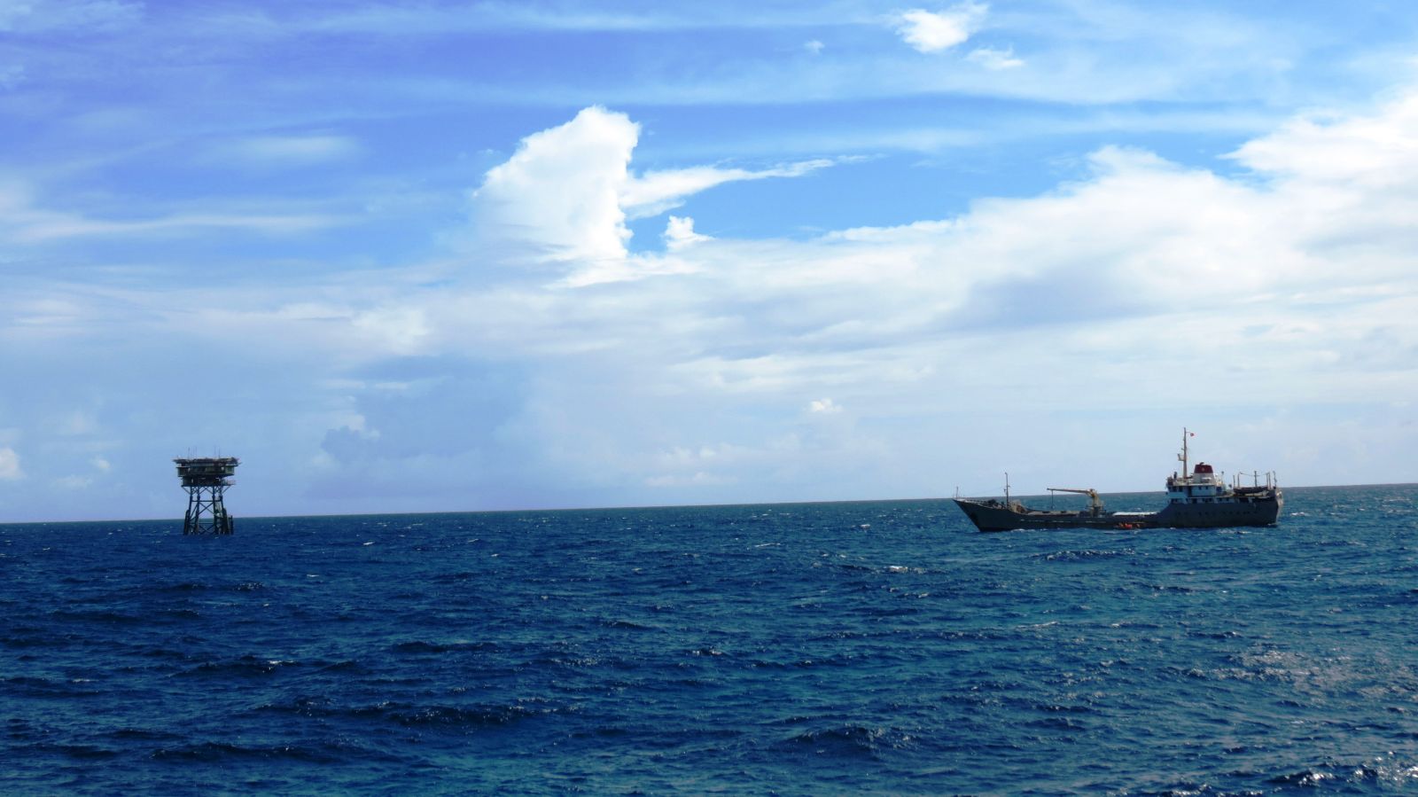 Mùa biển lặng, Nhà giàn kiêu hãnh trên “gương biển” khổng lồ. Ngư dân đánh cá coi Nhà giàn là điểm tựa bình yên.