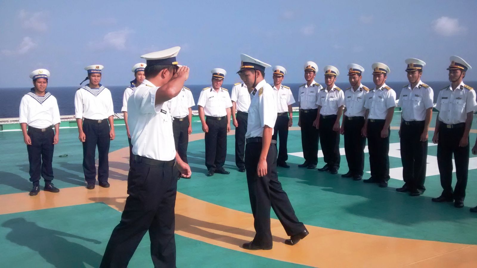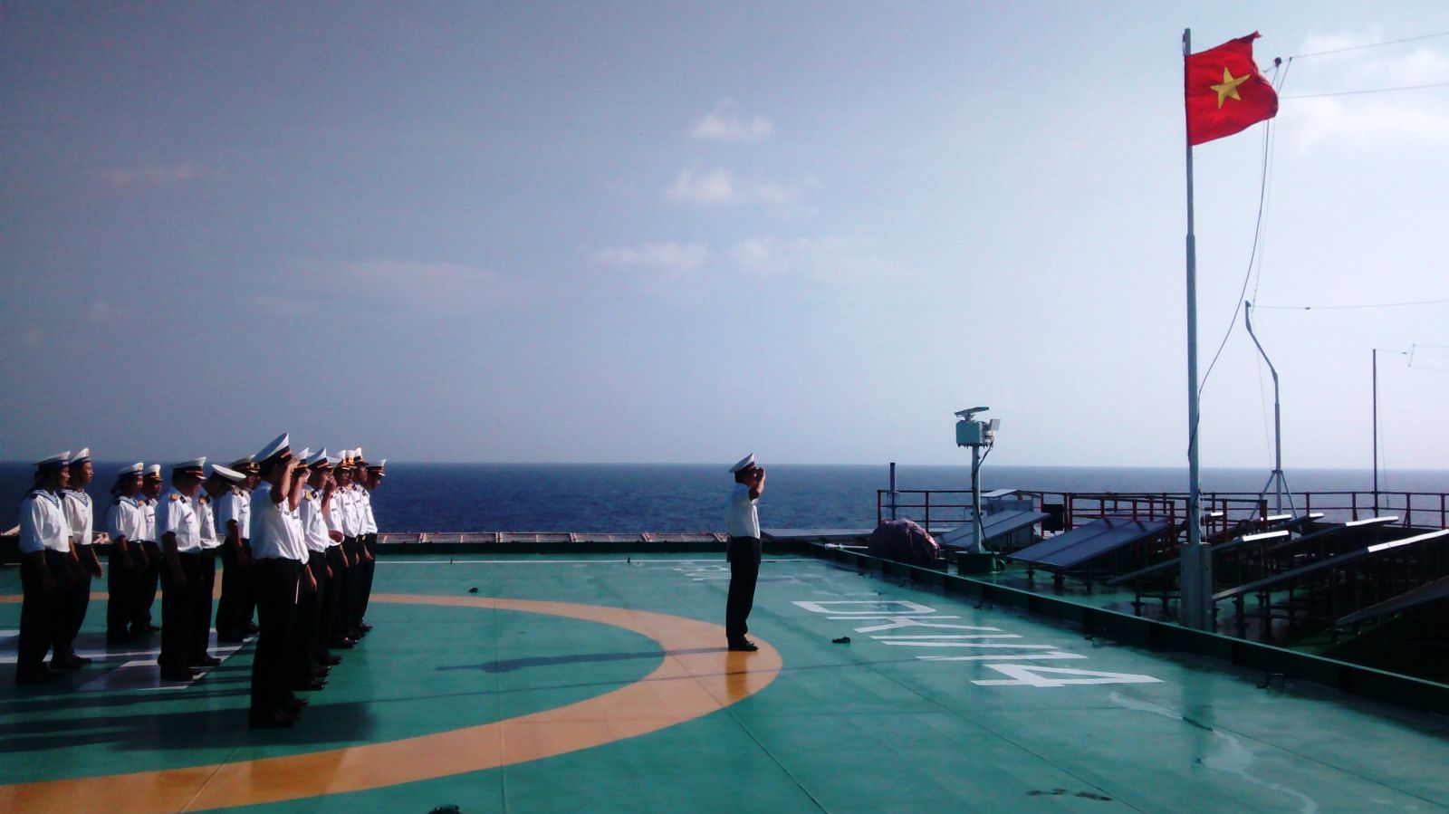 Chào cờ Tổ quốc- một nghi thức long trọng của nhà giàn.